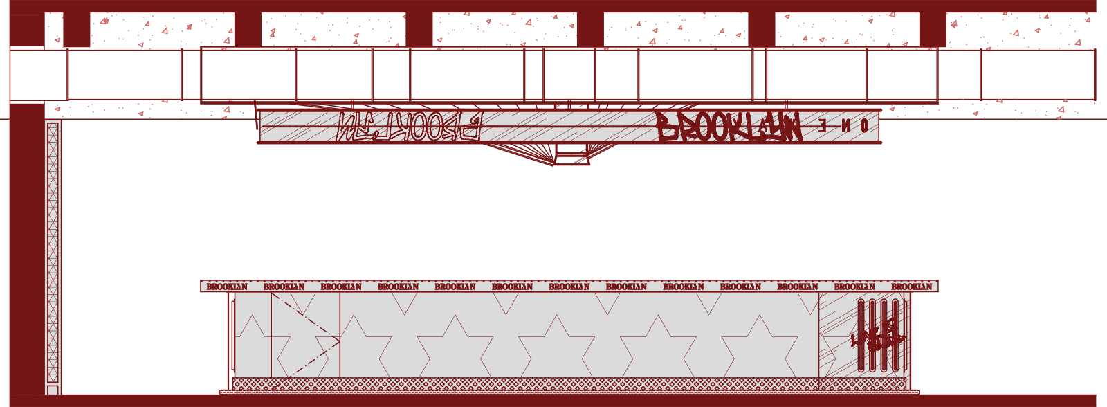 Совместно мы сформулировали желаемый вайб – дизайн в духе гетто Нью-Йорка смешанный с неоном, арт на стене с девушкой и пистолетом, название Бруклин (вдохновлено любимым треком и клипом клиента – Miyagi & Andy Panda feat TumaniYO - BROOKLYN).