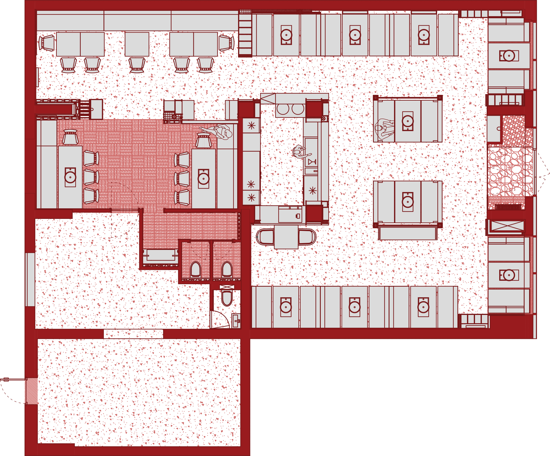 При проектировании мы учли дефицит бюджета на реализацию такого заведения. Эту проблему мы решили двумя методами: во-первых, использовали доступные материалы и простые технологии строительства при проектировании, во-вторых, мы предусмотрели возможность дробления процесса ремонта на 2-3 этапа при формировании проекта. Проект сделан так, что можно выполнить реализацию только основной части проектных решений и успешно открыть ресторан. После определенного срока работы заведения выполнить второй этап - декоративный (во второй этап входит возведение Пагоды (беседки) и потолочных декоров над ней в первом зале, декоративные светильники-рукава для вентиляционных конструкций над столами с гриль-плитами; декоративные потолочные конструкции во втором зале, декоративные маски и веера на стены, стена из бутылок «Соджу» в зал и в будуар). В процессе ремонта заказчик придерживался этого принципа и смог открыть ресторан, не выходя за рамки своего стартового бюджета.